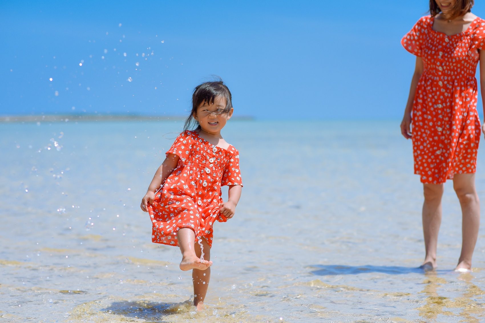ママと娘ちゃんはお揃いの赤いワンピース♡