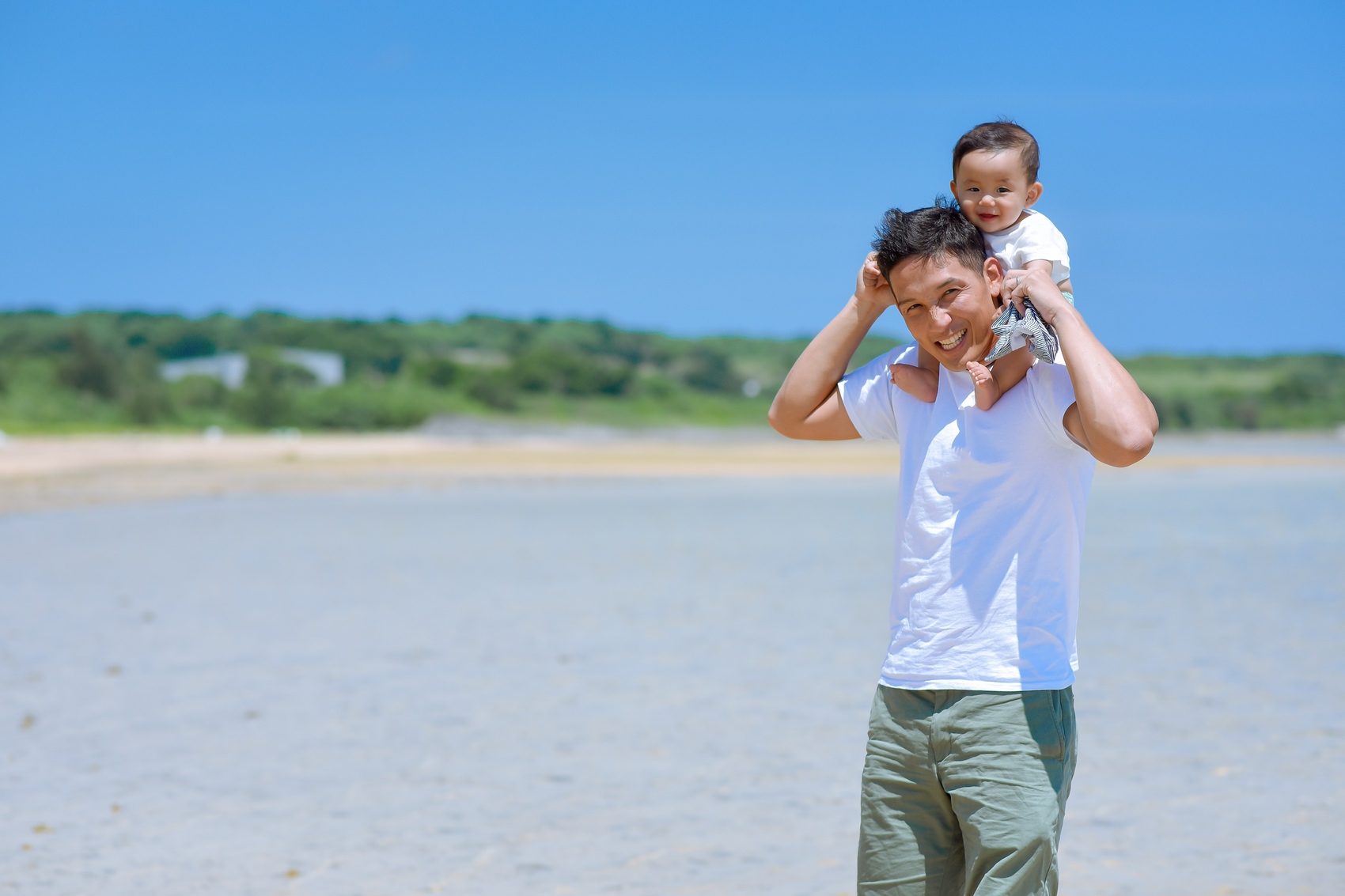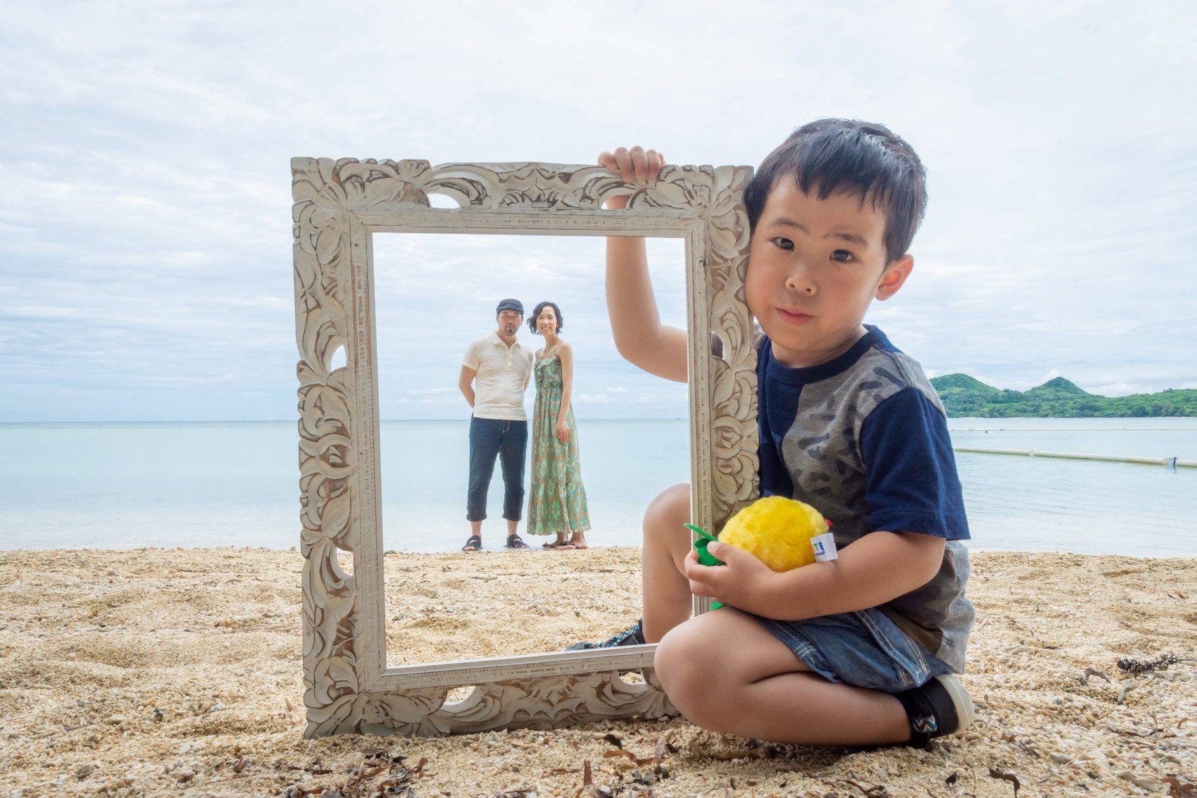 底地ビーチで撮影された三人ご家族のT様、M様、Kくんです。