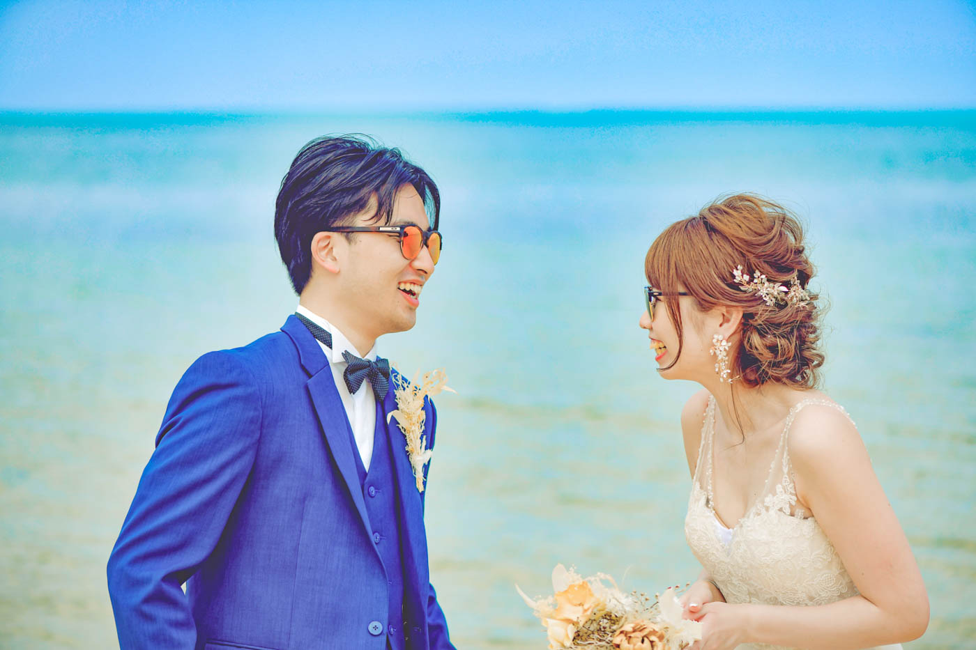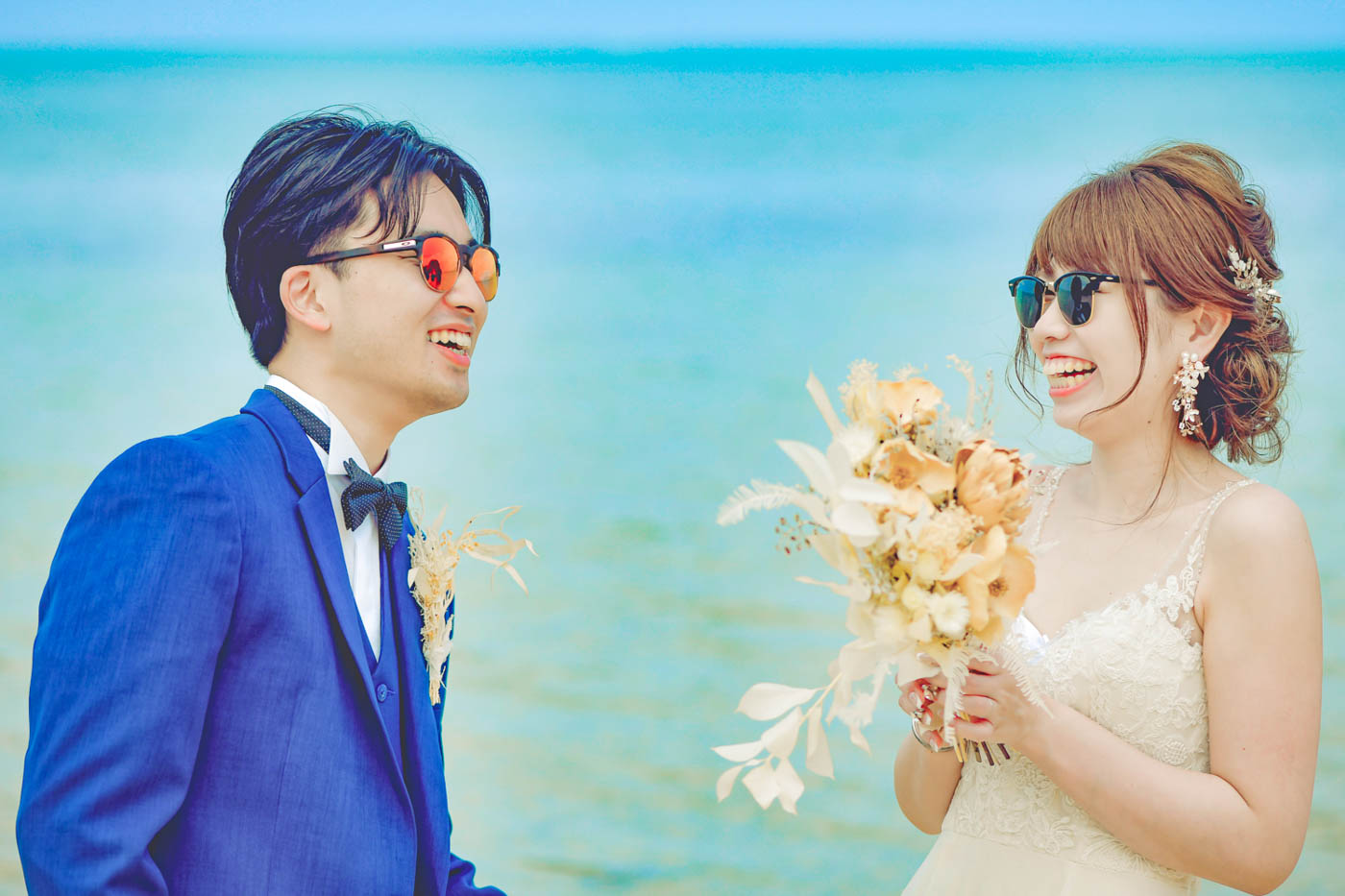 爽やかで紳士的な新郎Kさんに、無邪気な笑顔がすてきな新婦Sさん。はいむるぶしリゾートに滞在中に撮影をお申し込みいただきました。