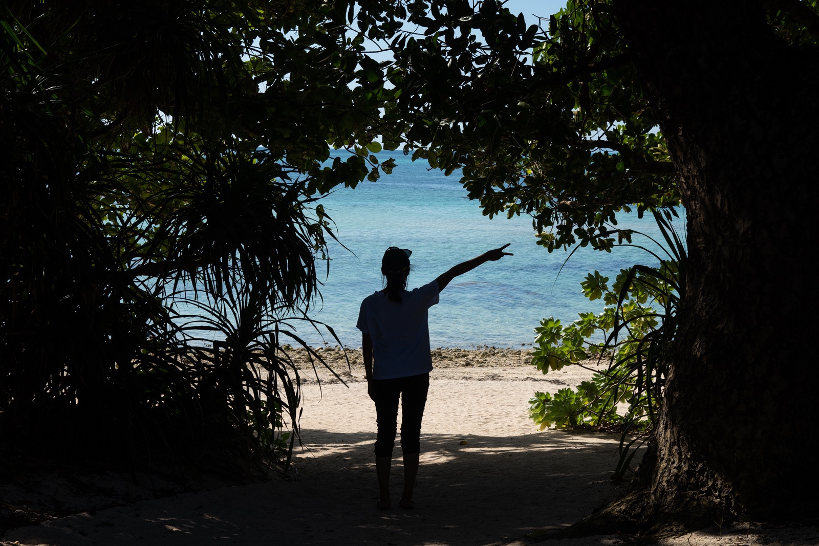 カイジ浜の入り口は、こんな感じでシルエットフォトを撮ることができます。