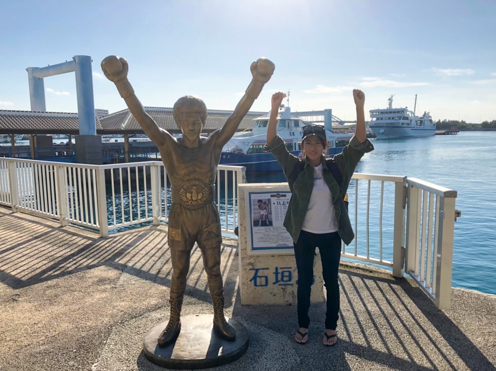 ここでまず抑えておきたいのは、石垣市出身の伝説のボクサー・具志堅用高さんのモニュメントですね!やっぱり一度は同じポーズで写真に収めておきたい…!